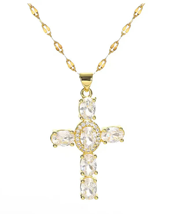 Goldene Zirkon Kreuzkette