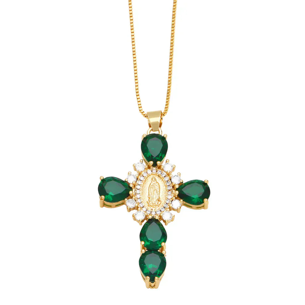 Grün / Gold Kristall Kreuzkette